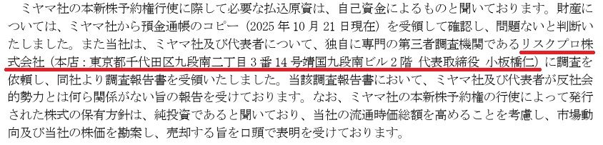 東証スタンダード上場企業(建設)の新株予約権の一部譲渡先が暴力団等の反社会的勢力であるか否か、並びに割当予定先等が違法行為に関与しているか否かの第三者調査機関として、当社が採用されました。その調査報告書について、関東財務局ならびに東京証券取引所の承認を経て、有価証券届出書ならびに適時開示資料に当社の名前が掲載されています。