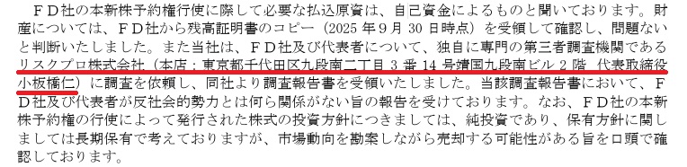 東証スタンダード上場企業(卸売)の新株予約権の一部譲渡先が暴力団等の反社会的勢力であるか否か、並びに割当予定先等が違法行為に関与しているか否かの第三者調査機関として、当社が採用されました。その調査報告書について、関東財務局ならびに東京証券取引所の承認を経て、有価証券届出書ならびに適時開示資料に当社の名前が掲載されています。