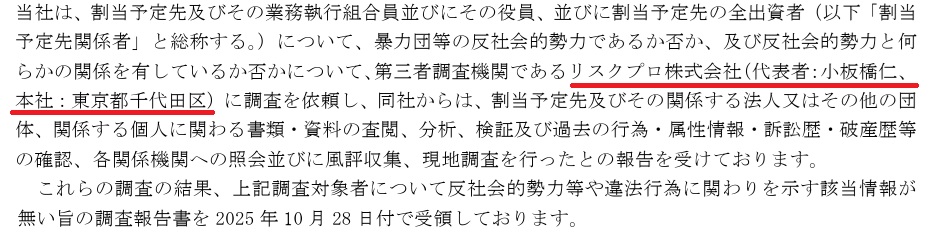 東証プライム上場企業(機械)の第三者割当により発行される新株予約権の割当先が暴力団等の反社会的勢力であるか否か、並びに割当予定先等が違法行為に関与しているか否かの第三者調査機関として、当社が採用されました。その調査報告書について、関東財務局ならびに東京証券取引所の承認を経て、有価証券届出書ならびに適時開示資料に当社の名前が掲載されています。