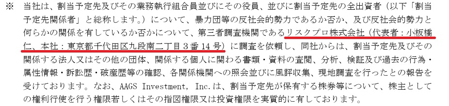 東証プライム上場企業(情報通信)の第三者割当により発行される新株予約権及び無担保転換社債型新株予約権付社債の割当先が暴力団等の反社会的勢力であるか否か、並びに割当予定先等が違法行為に関与しているか否かの第三者調査機関として、当社が採用されました。その調査報告書について、関東財務局ならびに東京証券取引所の承認を経て、有価証券届出書ならびに適時開示資料に当社の名前が掲載されています。