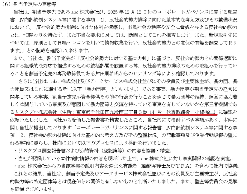 東証スタンダード上場企業(電気機器)の第三者割当により発行される新株予約権(行使価格修正条項付)の割当先が暴力団等の反社会的勢力であるか否か、並びに割当予定先等が違法行為に関与しているか否かの第三者調査機関として、当社が採用されました。その調査報告書について、関東財務局ならびに東京証券取引所の承認を経て、有価証券届出書ならびに適時開示資料に当社の名前が掲載されています。