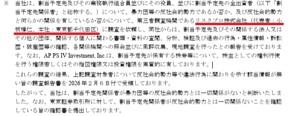 東証プライム上場企業(卸売)の第三者割当により発行される無担保転換社債型新株予約権付社債の割当先が暴力団等の反社会的勢力であるか否か、並びに割当予定先等が違法行為に関与しているか否かの第三者調査機関として、当社が採用されました。その調査報告書について、関東財務局ならびに東京証券取引所の承認を経て、有価証券届出書ならびに適時開示資料に当社の名前が掲載されています。